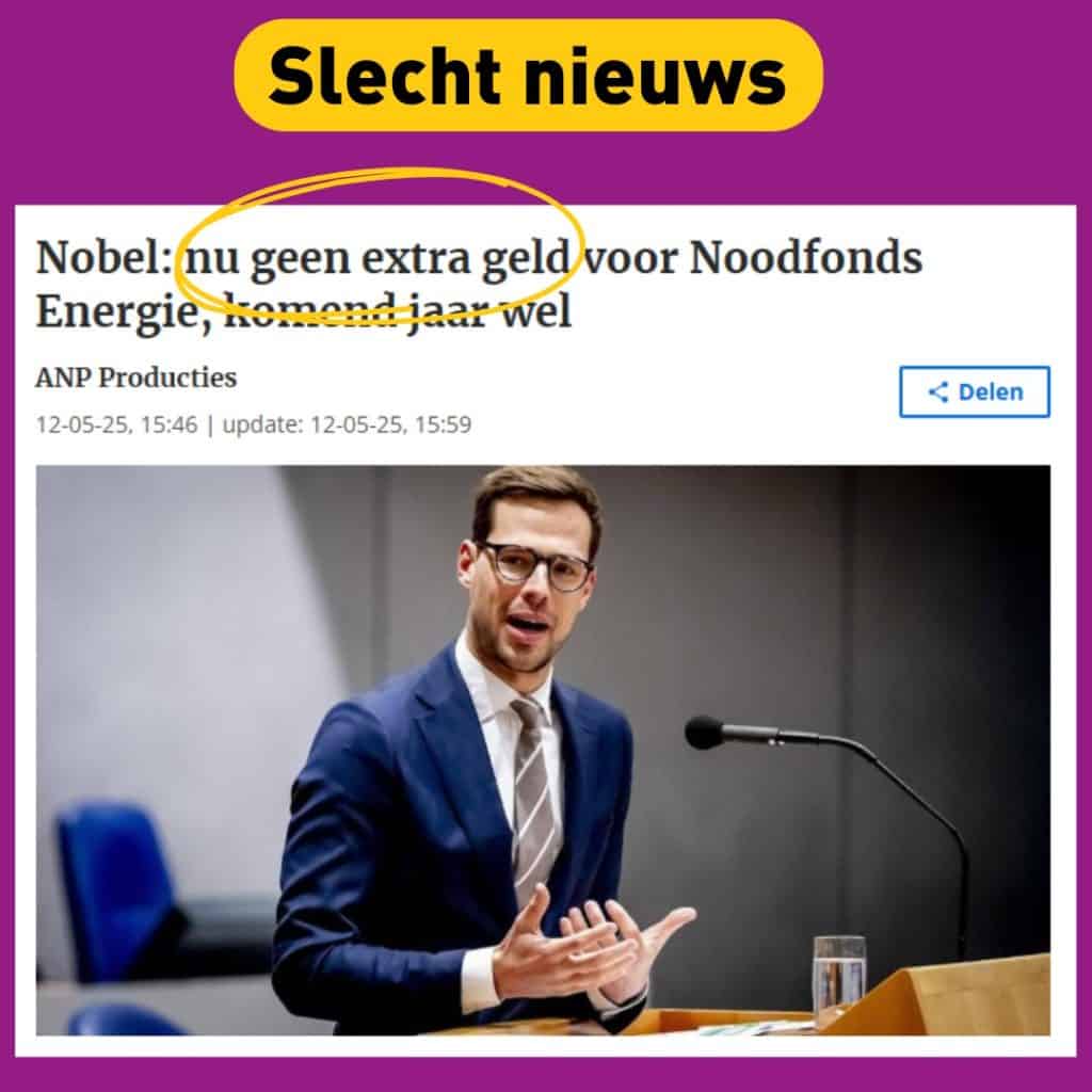 De maatschappelijke druk zet wel iets in beweging: in 2026 komt er mogelijk wel steun voor huishoudens in energiearmoede. Maar dat lost de problemen niet op van honderdduizenden gezinnen die nú hun energierekening niet kunnen betalen.