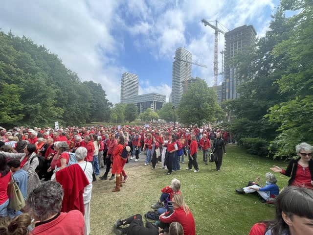 Bij de beelden hierboven: Een Rode Lijn demonstratie 2025 in Den Haag met beelden van ondermeer Diloba is licensed under CC BY 4.0